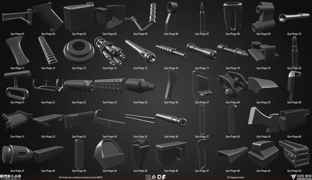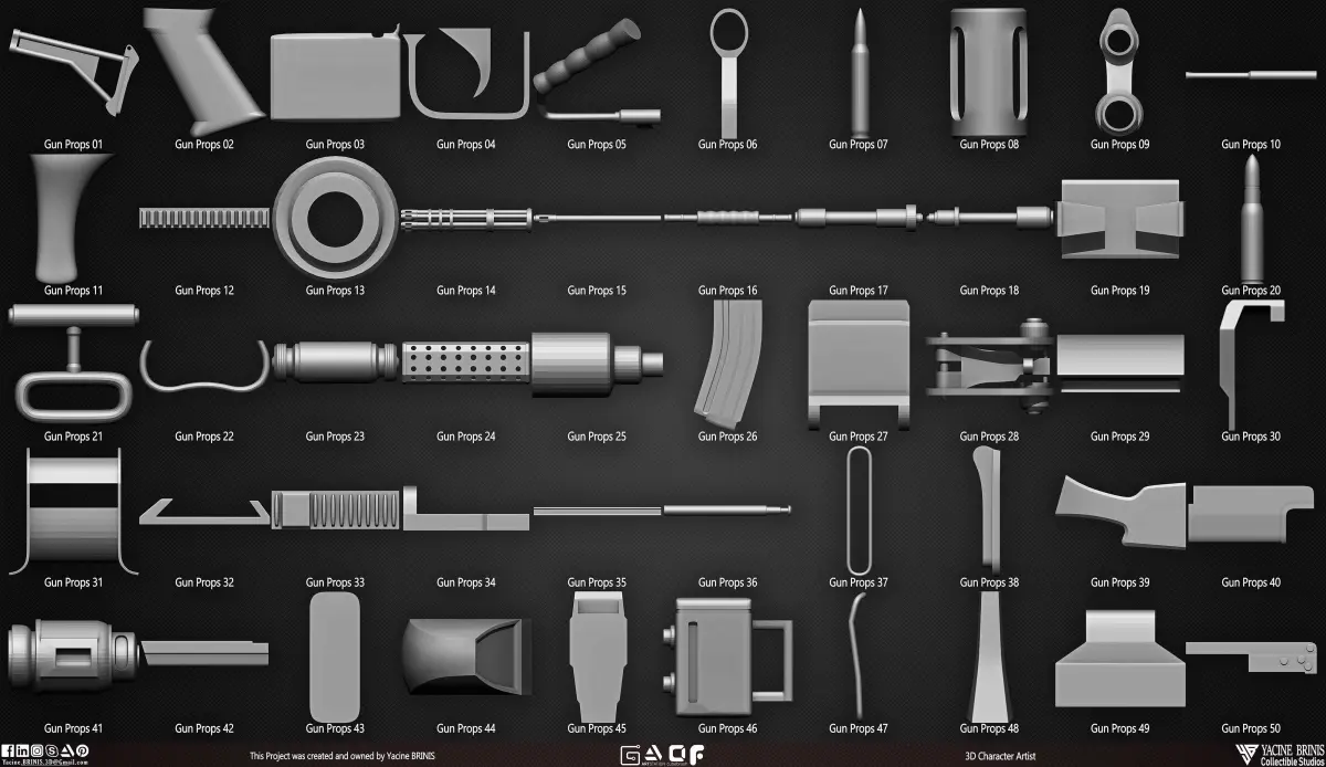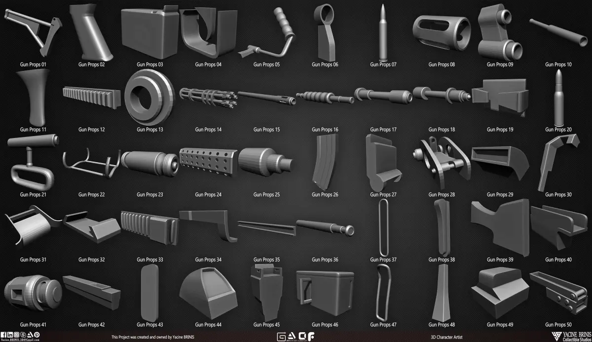 - This is a set of 50 Gun props You can use to create your own gun and machine gun-like AK 47, they are very detailed props with UV's and a nice geometry.