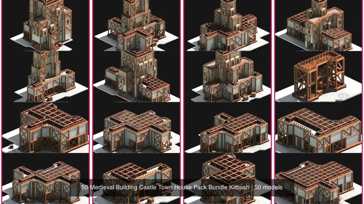 Medieval Lowpoly Building Castle Tower Wooden Village Old Stone House Historical Architecture Old