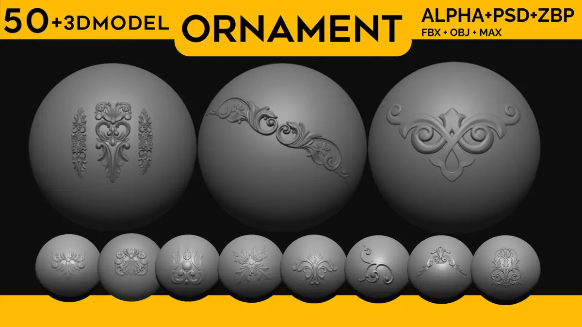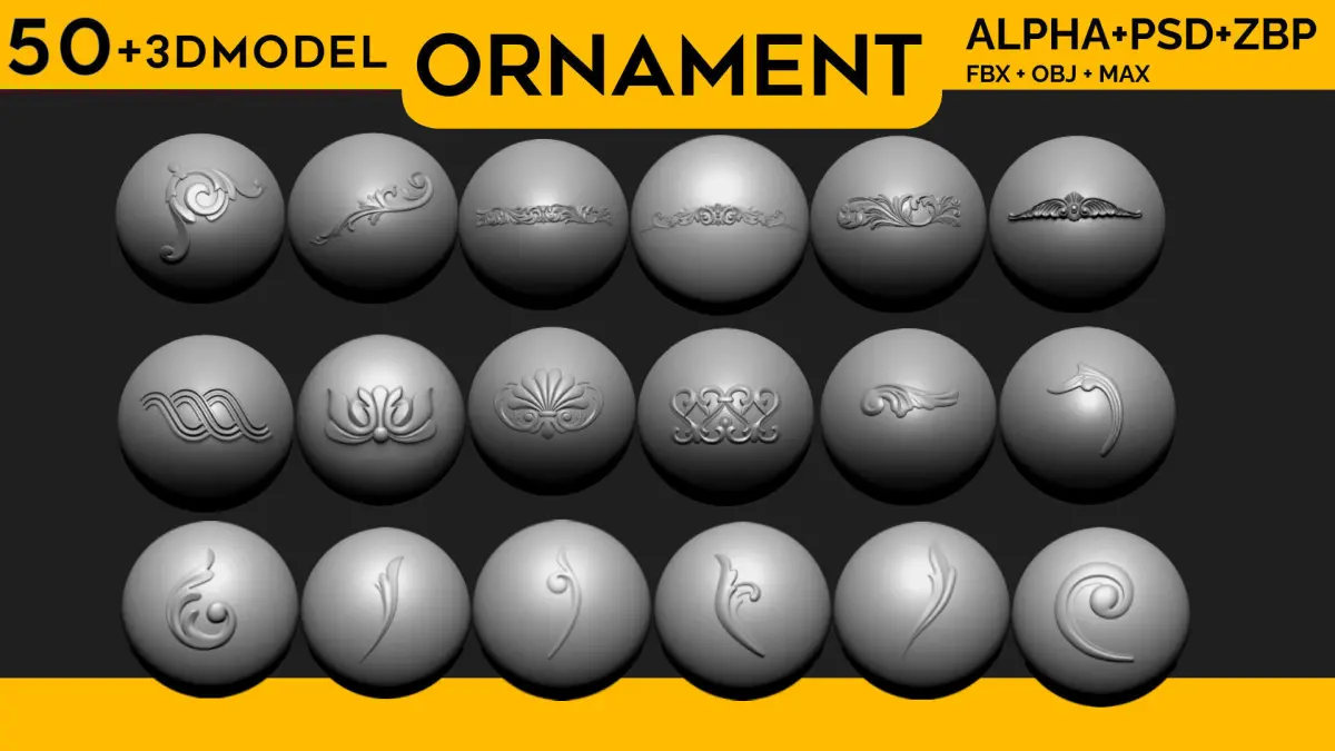 - This Product include 50 Ornament alpha/brush set for ZBrush, Substance Painter,Photoshop and etc.