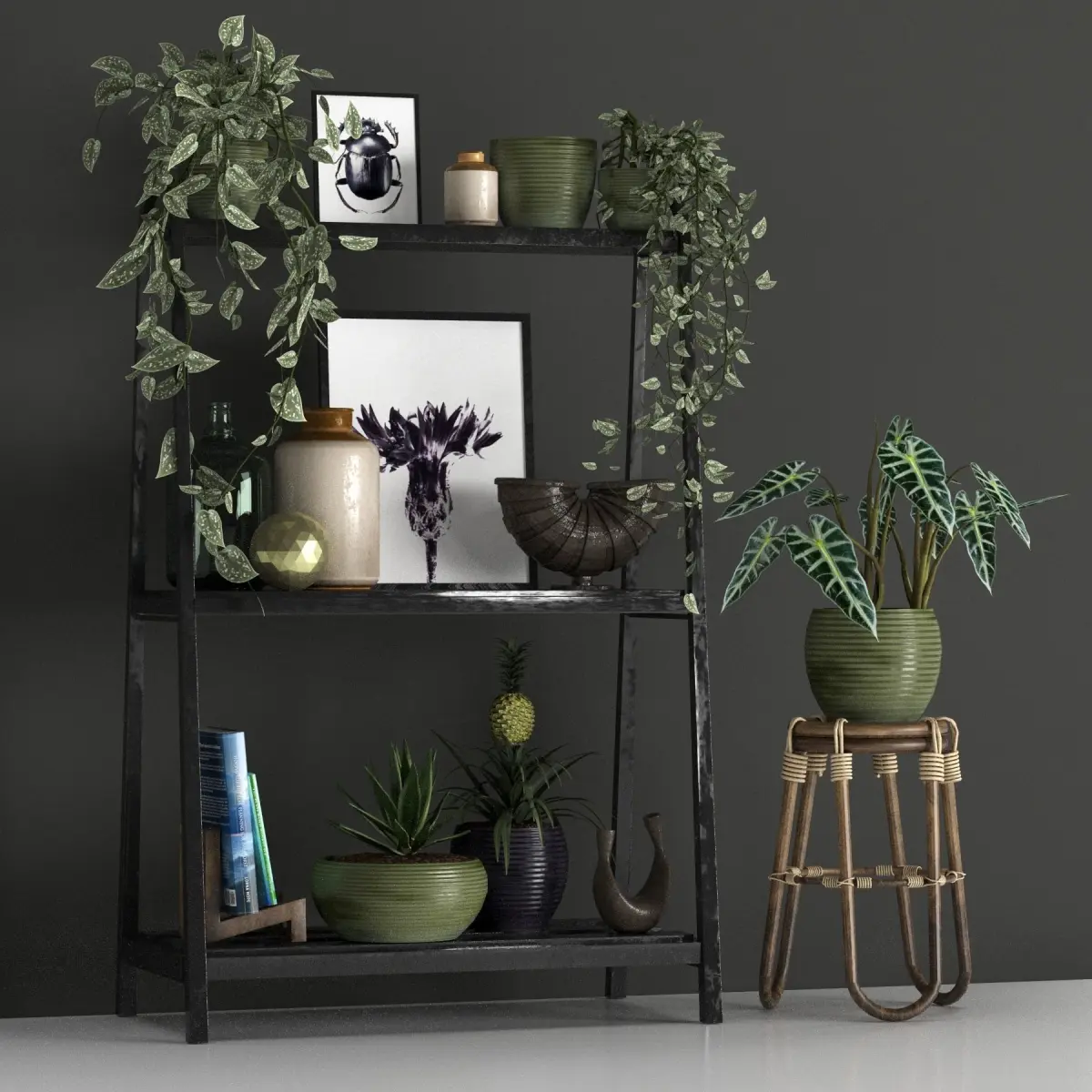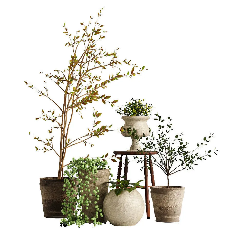 This Collection Includes More than 50 Types of Plants With Pots And Their Stands