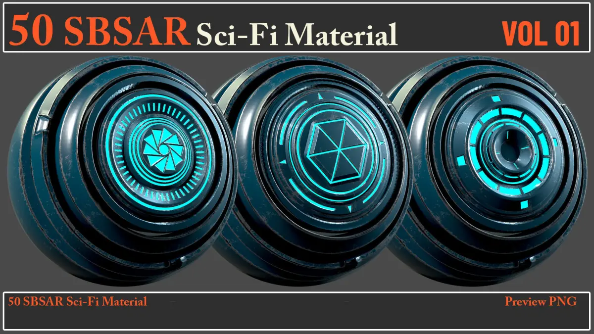Here is a set of 50 SBSAR Files Sci-Fi materials VOL 01 made entirely in substance designer.