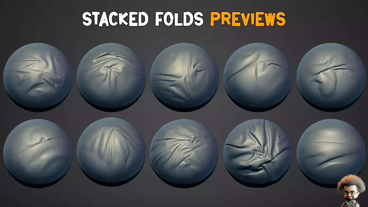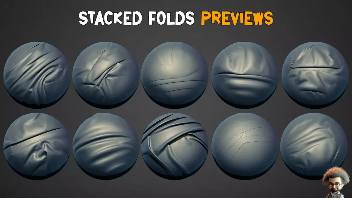 Introducing 50 premium stacked fold brushes, designed to add layered, heavy, compressed fabric folds to your digital sculpts. Perfect for sculpting hanging clothes, stacked fabrics, bundles, or thick garments with complex layering