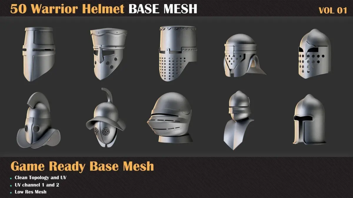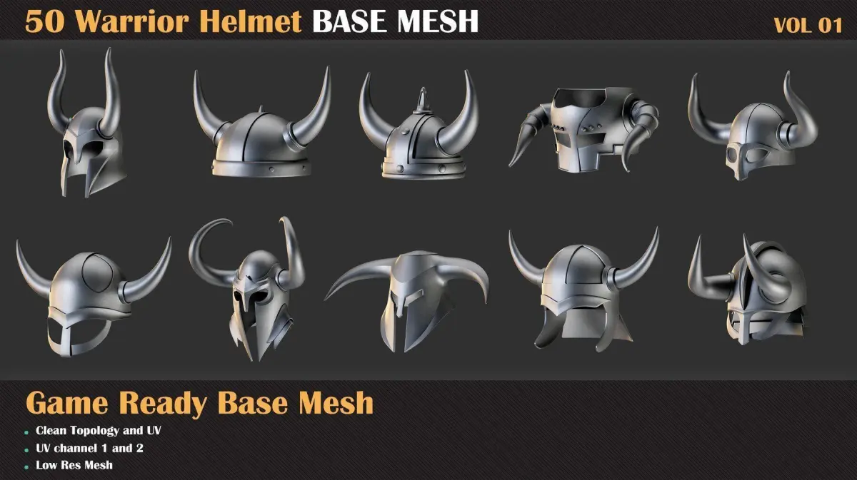 *50 Warrior Helmet Base Mesh - VOL 01 ( Game Ready )