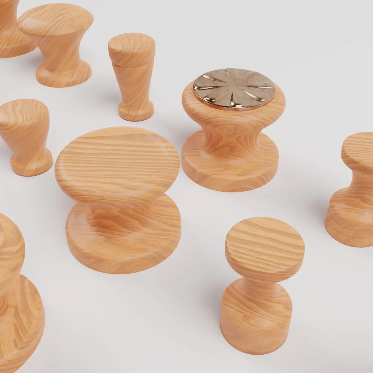 This file contains 50 different wooden furniture handles for ArchViz. All are build after real reference in realworld scale. The models are highly detailed and properly UV-unwrapped for close-up views.The file contains 2 example materials (wood/metal) which can be easily changed to any material needed. Every model is ready-to-use for you can just add them to your furniture model without any problems.