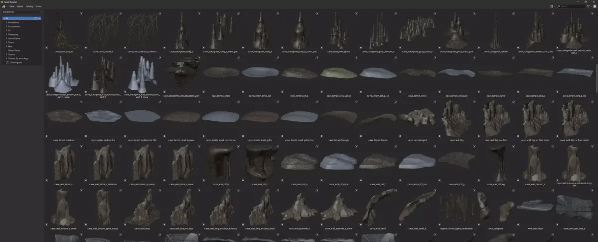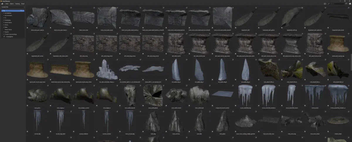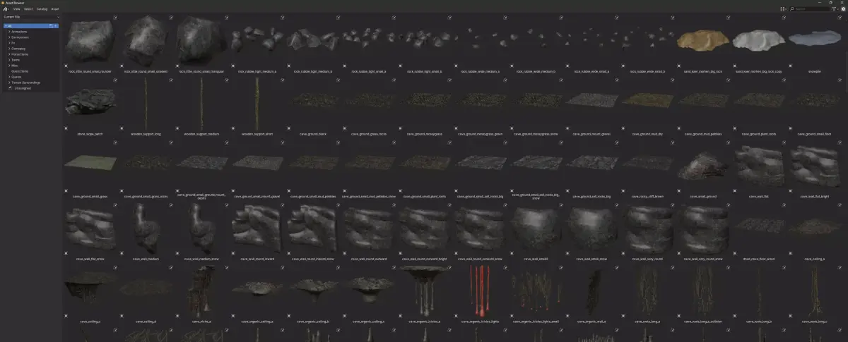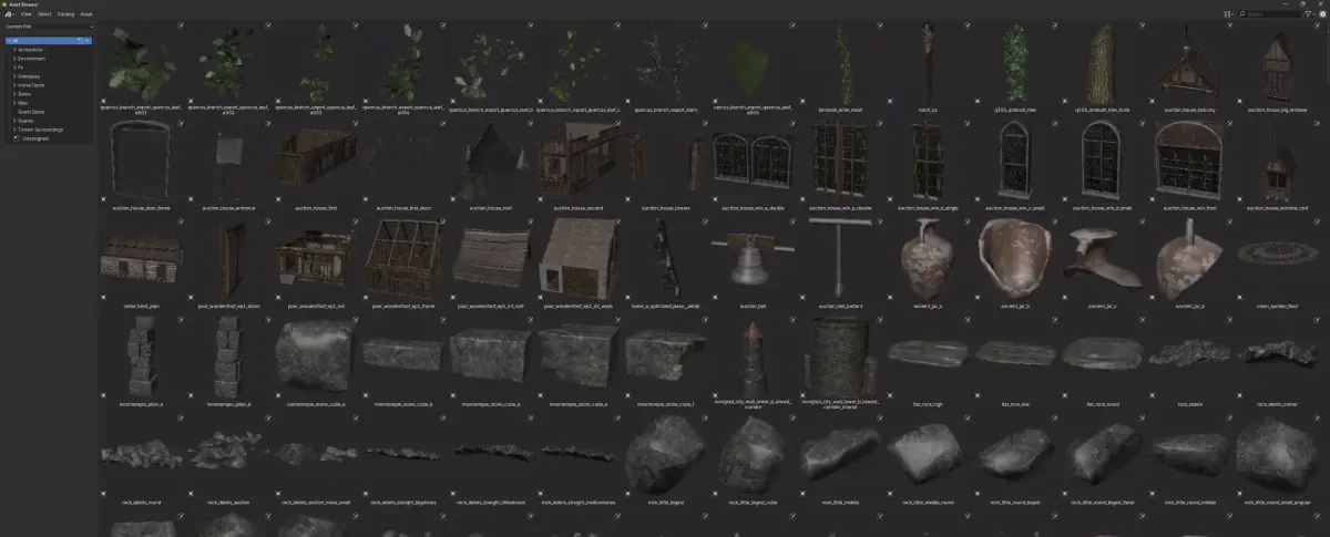 - Assets organized into categories and subcategories