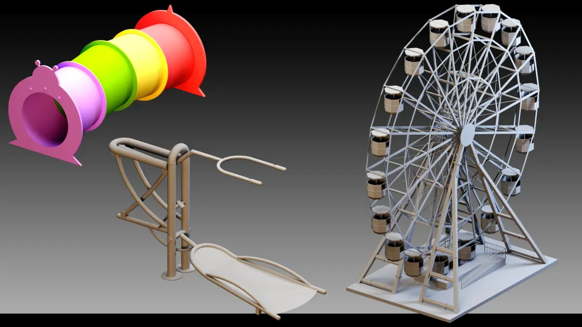 This product includes 51 Funfair Objects- Vol 02- High detail 3d models in 3 formats