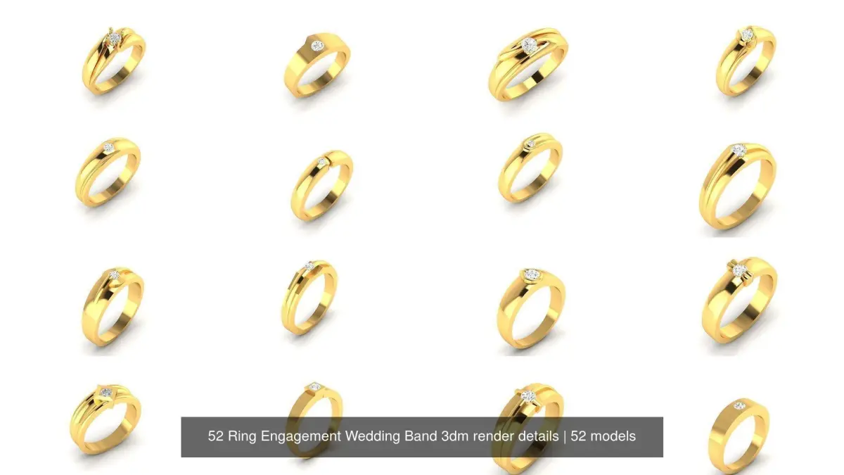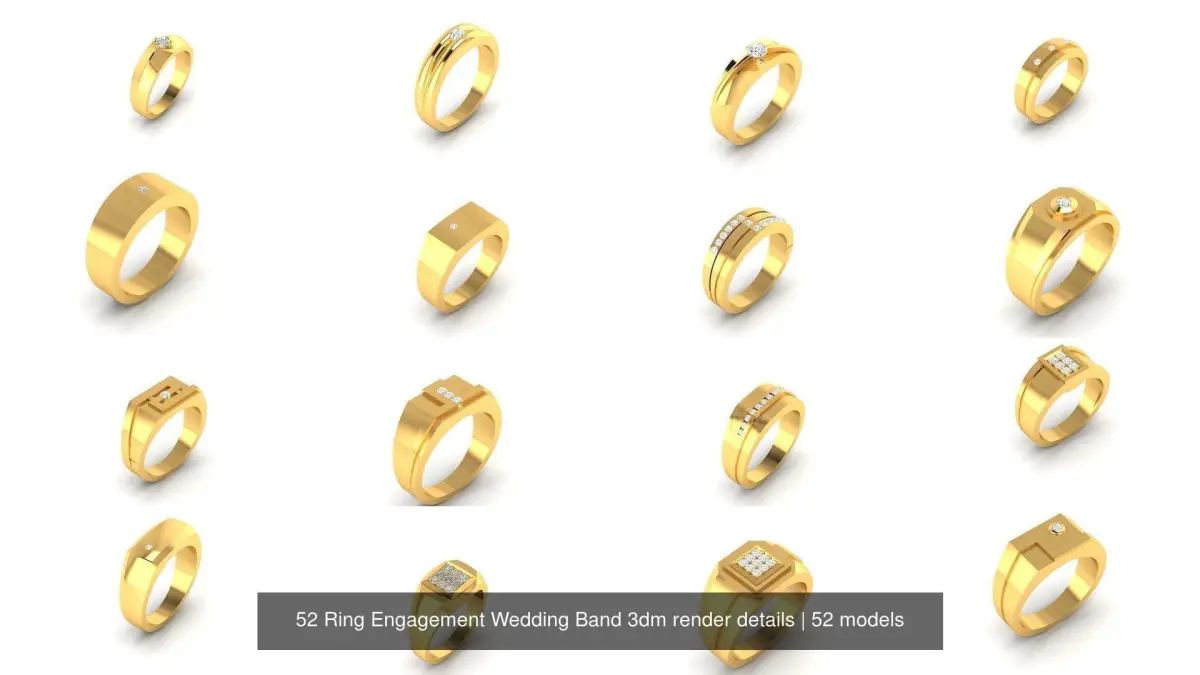 52 Ring Engagement Wedding Band 3dm render details 3D Model Pack