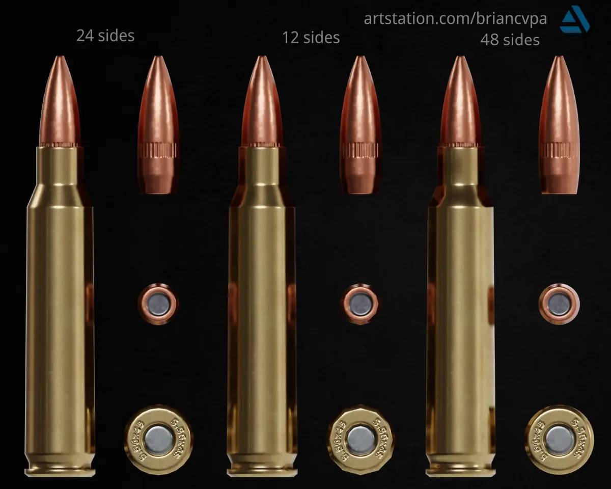 The base models have 24 sides and a polycount of around 1000 triangles each, but it can be reduced or subdivided without a loss of quality in the normals.
