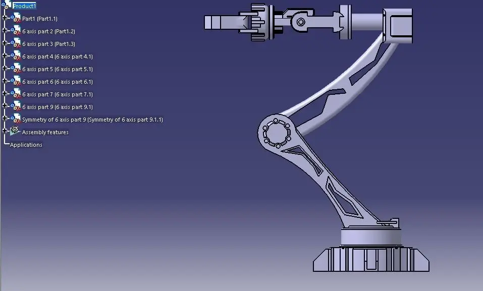 1.This is a 6 axis robot consisting of 9 CAD parts assembled together.