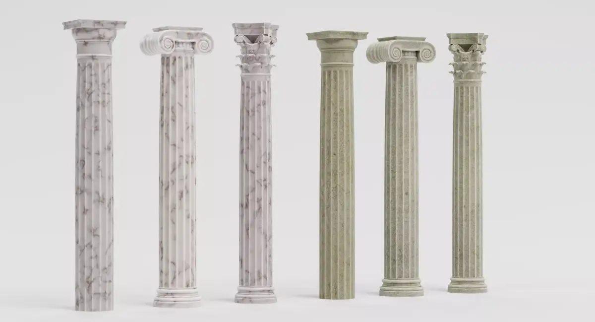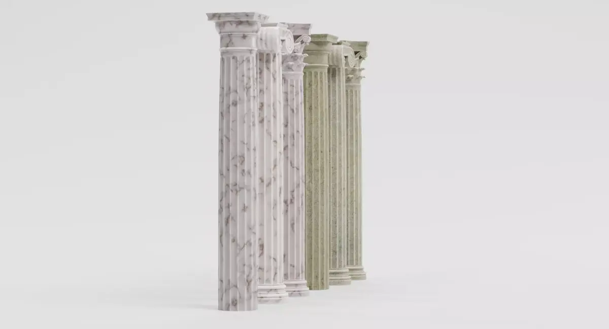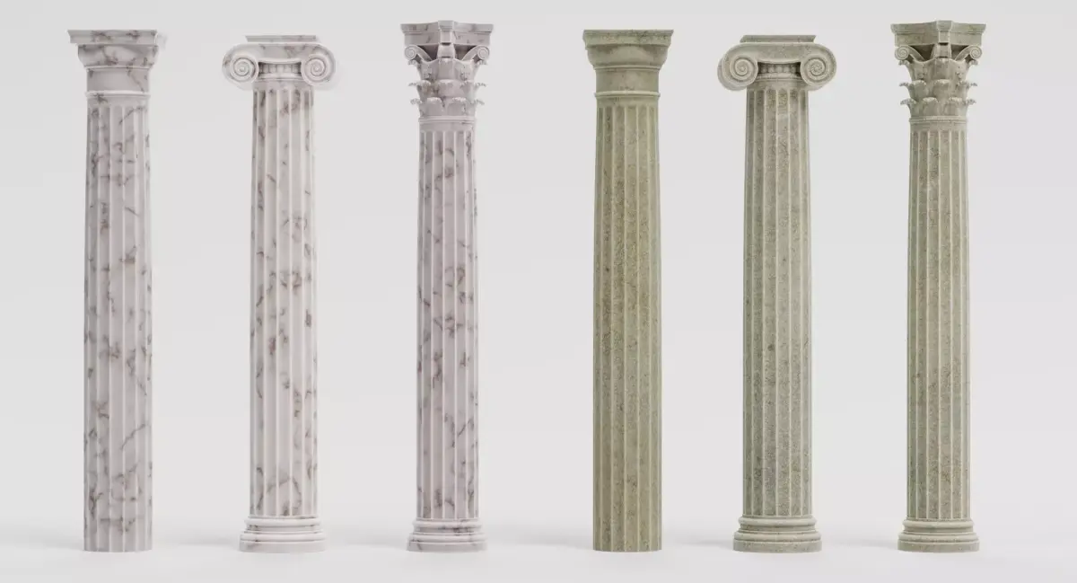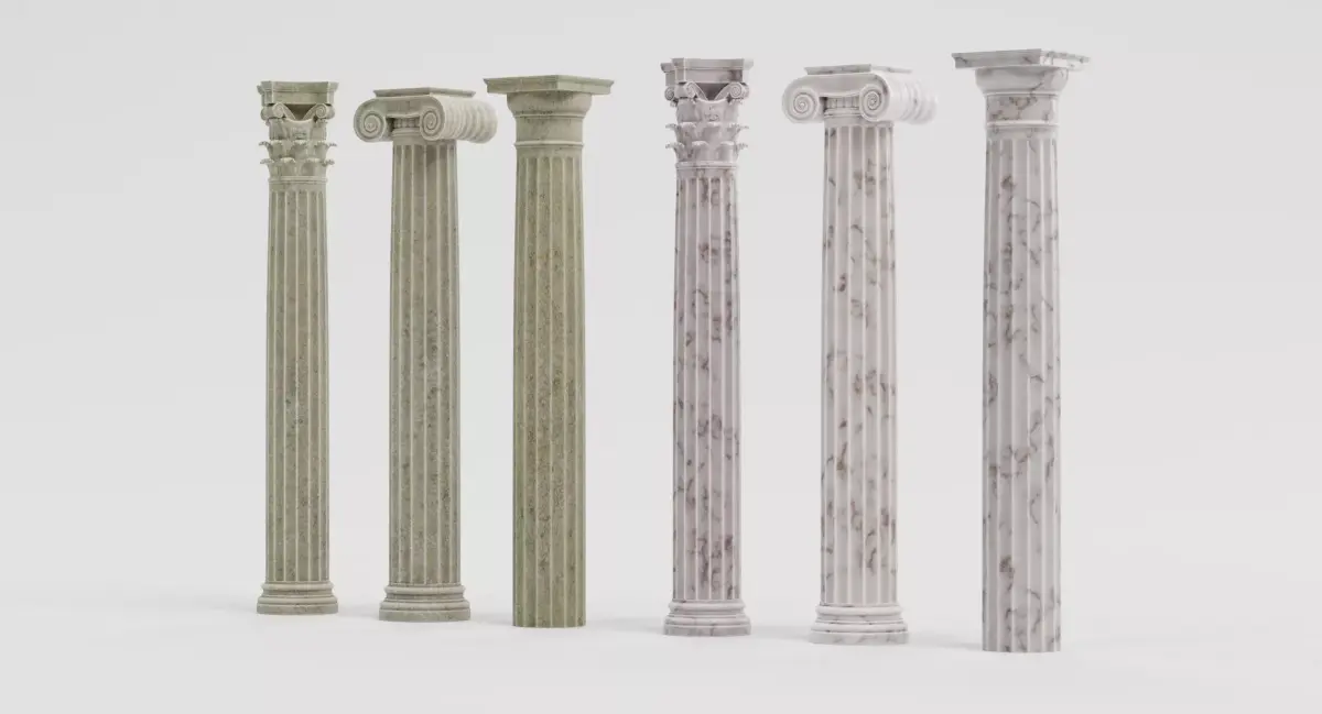 A complete collection containing all six column variants: Doric, Ionic, and Corinthian in both clean and aged versions. Each column is modeled as an individual architectural element, designed to work together or independently within a scene. This set offers maximum flexibility for building classical architecture across different time periods and visual styles. Designed for efficient scene building, visualization, and historical environments.