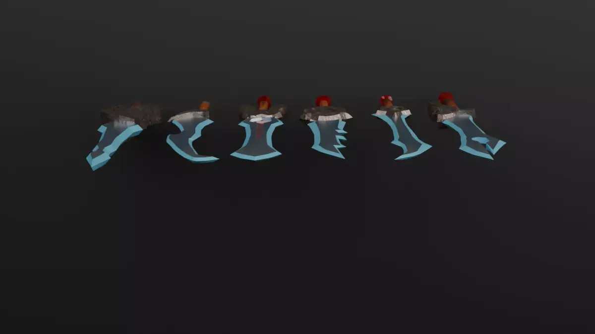 Hilts/Guards: Dark, rocky crag-like textures that provide a heavy, grounded contrast to the blades.