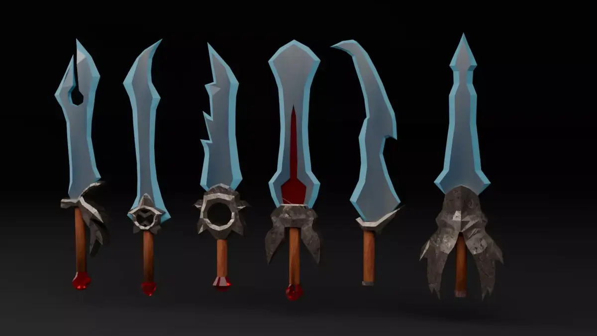 This 6-Piece Fantasy Sword Pack offers a diverse collection of low-poly, game-ready assets designed with a distinct elemental aesthetic. Combining crystalline blades with rugged, earthen crossguards, these models are perfect for RPGs, dungeon crawlers, or fantasy-themed environments.