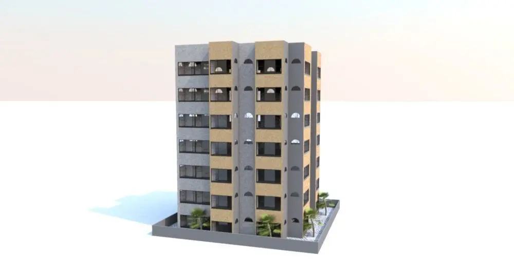 6 floor residence Building(Ground + 6). Building meterial are include this modal and texture is include in defernts dawnload link. Modal available in five deferants formets. All images are include in deferent link.