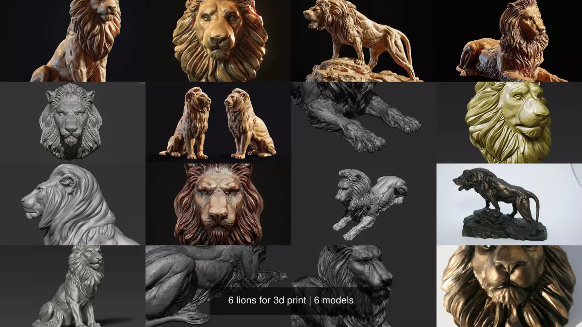 6 Lions (4 full body lions and 2 heads) 3d print models, fit for rendering, Architecture decoration, Jewelry design etc. File Formats: .stl, .zbr, .max, .obj, .fbx .blend