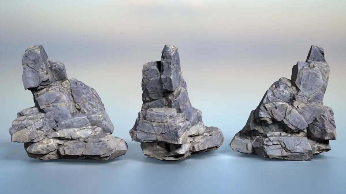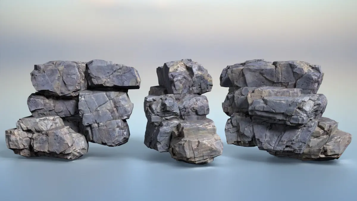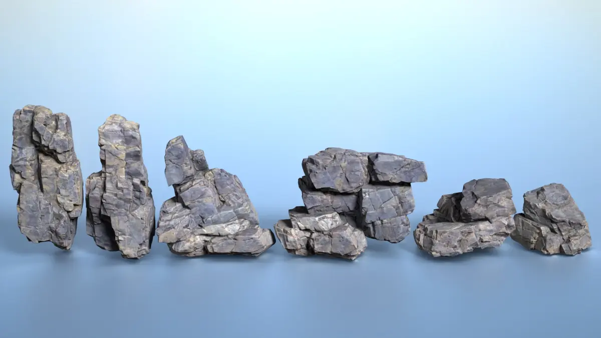 The product includes 6 Modular Cliff Rocks. The details of the model are depicted in all different angles, so you can replicate them, then rotate, flip, scale to combine them and create a variety of shapes.
