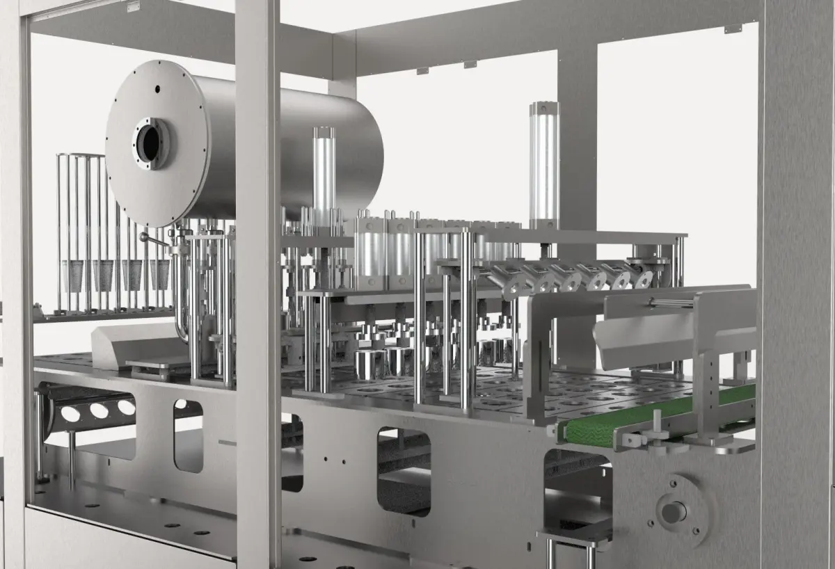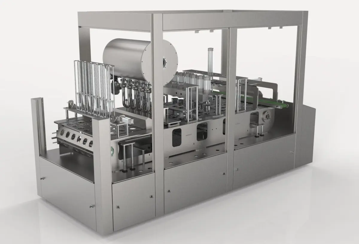 We provide you in full 3D Modeling for filling and sealing machine with 6 nozzles made of stainless steel 304, this machine works with electric motor and geneva gear box , (automatic feeding system , UV lamp for sterilization , filling unit 6 nozzle , aluminum seals feeding system , sealing station by heating heads , expiration date print unit and automatic mechanesim extraction the cups) ,it contains Sldprt , Sldasm ,edrawing solidworks files , dxf autocad files , Keyshot render file , parasolid file, also in these files you can find plans DXF Files for cnc laser cutting and lathing the parts , in this machine we depend liquid falling system , you have all the files you need to create Cups filling production line with 6 nozzels .