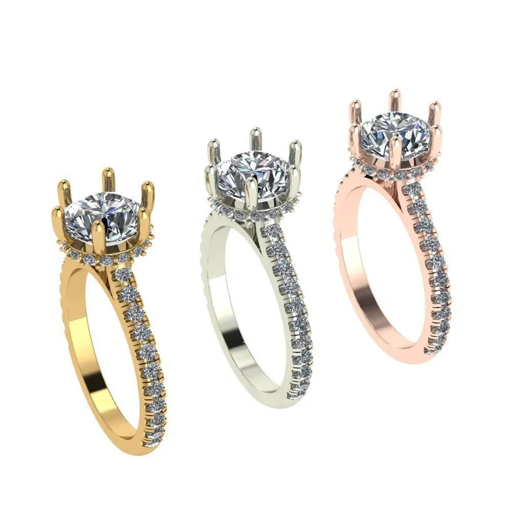 6 Prong solitaire hidden halo diamond ring 3D print model