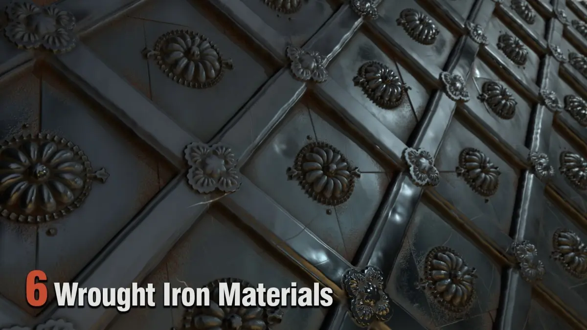 These six PBR materials are inspired by medieval wrought iron. You can export seamless textures at 4K with Substance Player and use them in your projects. Combine them with wood, stone or with each other to increase the details of the environment very quickly.