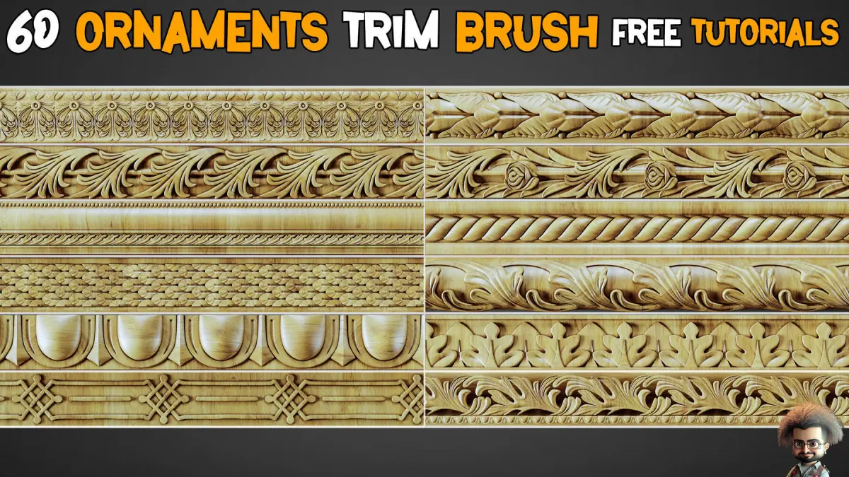60 Ornaments Trim 3D models8K (8192*8192).16 BitZbrush Brush , PSD , PNG , OBJ , FBX , MAX ,JPEG (preview)Unwrapped3D Models OBJ-FBX-Max File.Full HD Tutorials(1080)Note :