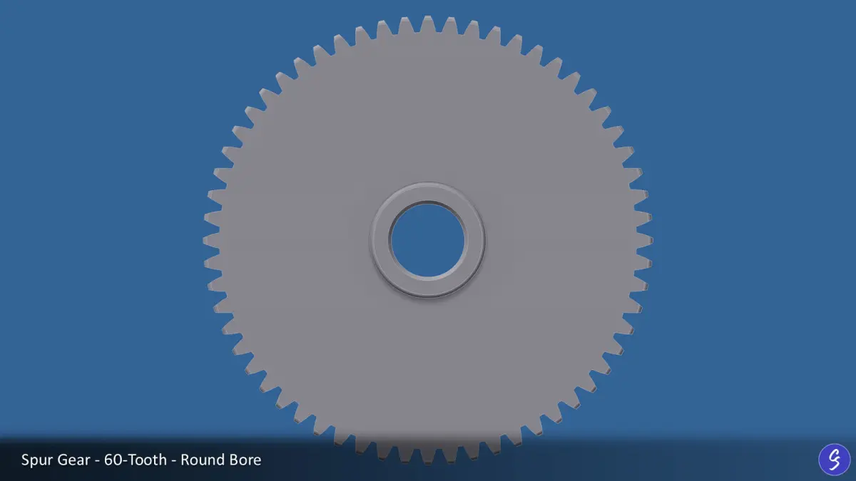 60-tooth spur gear, provided with multiple bore styles, accurately modeled and ready for use in CAD, CGI, and 3D print applications. Modeled in Autodesk Inventor and provided in multiple file formats. Perfect for both digital and physical mechanical design projects.
