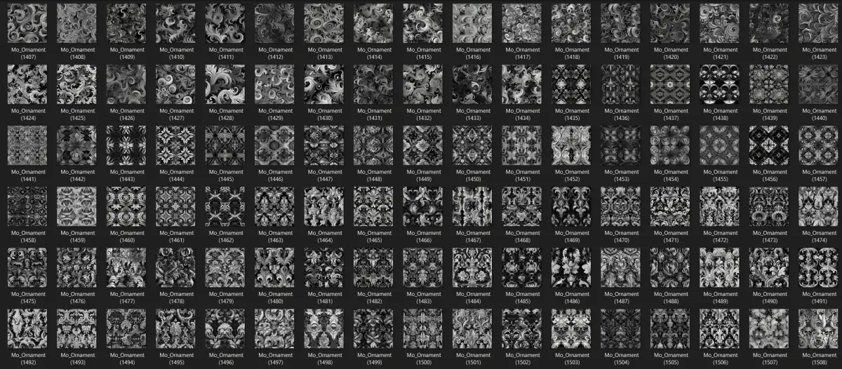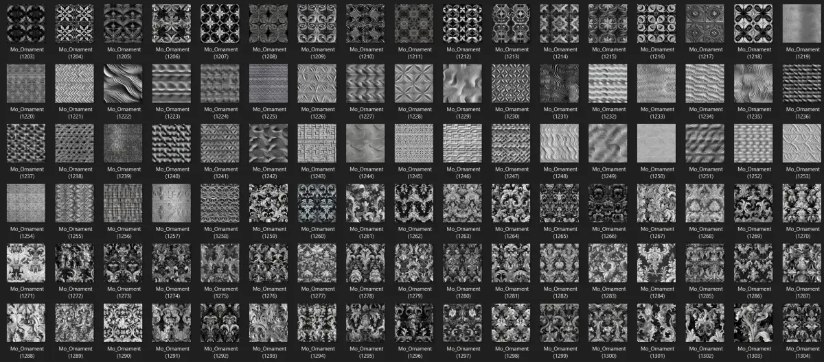 Ornamental objects - interior decoration - Exterior decoration- Furniture- Architecture and design of columns and structures- equipment -characters - Luxury - Royal - Floral - Vintage - Damask - Ethnic - Classic (Ancient) - Calligraphic - Fantasy - Swirly - Geometric - Holy Feasts (Halloween and Christmas) - Asian - Arrows - Gemstones (Diamonds) and Wedding