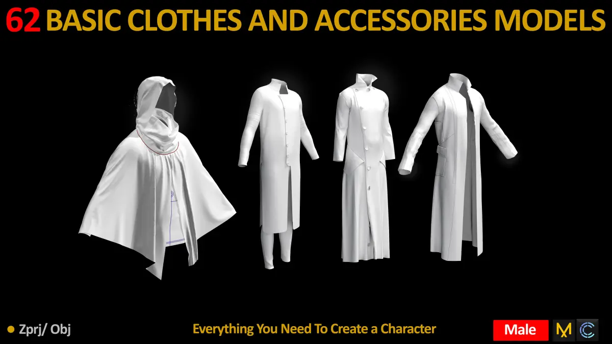 62 BASIC CLOTHES AND ACCESSORIES MODELS. MARVELOUSE DESIGNER AND OBJ FILES