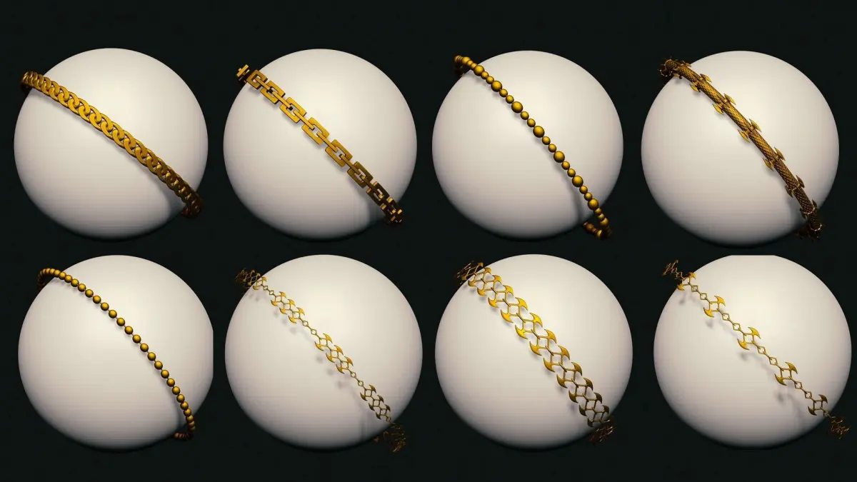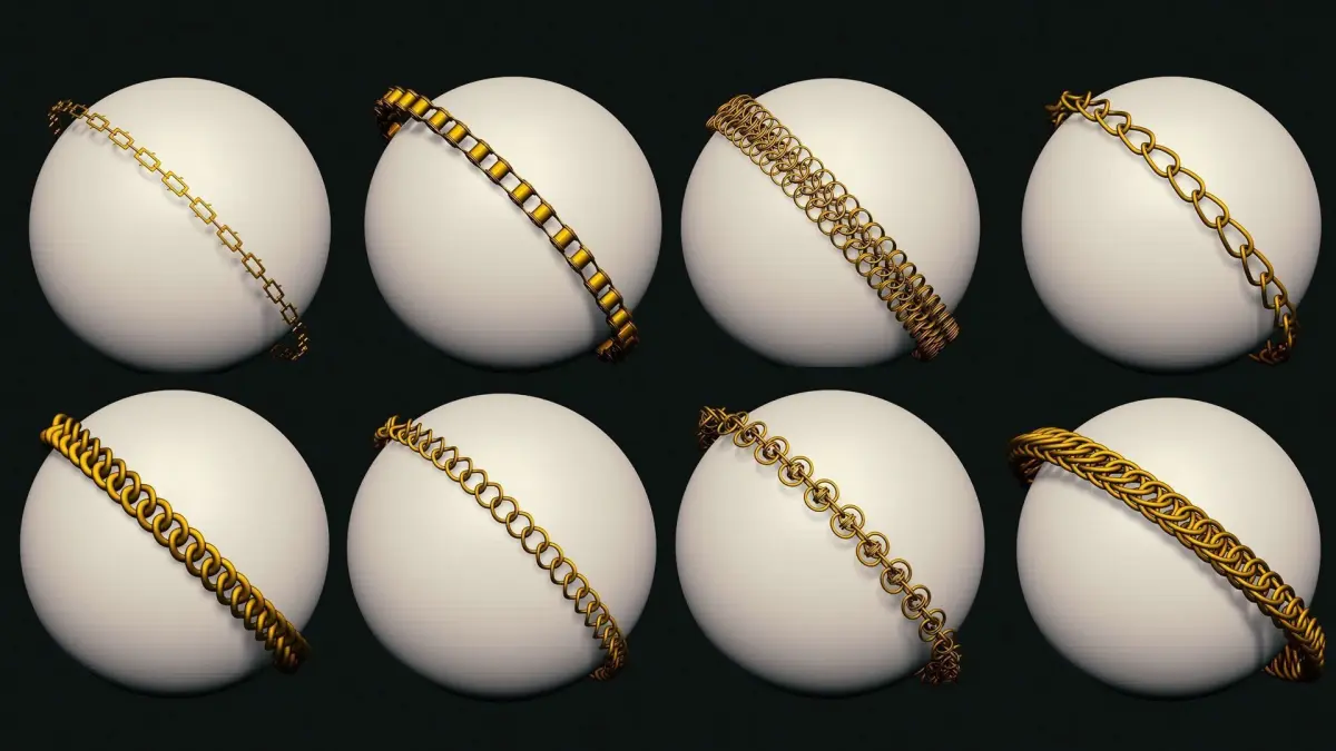 There are 63 sci-fi IMM crved brush chains for zbrush and each brush has 2 versions high and low poly. Also you can have all meshes.