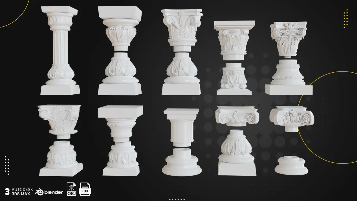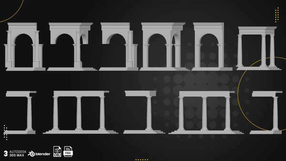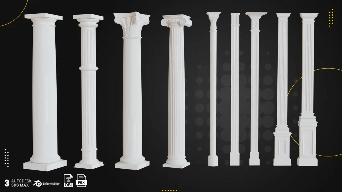 *66 Columns Rome, Greece & Persia*This collection consists of 66 columns from different ethnicities and nations that you can use. Columns that are related to different historical periods of Greek, Achaemenian, ....You can use this pack in design, modeling, lighting, rendering, reference of 2D and 3D projects, digital painting, environment design, concept, etc.