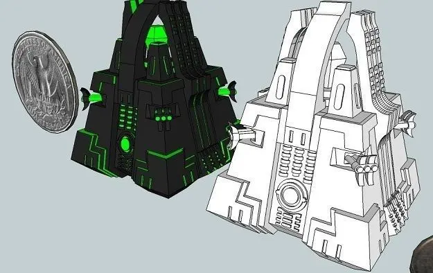 This is a monolithic 6mm-scale Deathbot War-Pyramid for use with sci-fi wargames such as Epic 40K, Dirtside, Future War Commander, etc. The comes in three parts and is easily assembled.