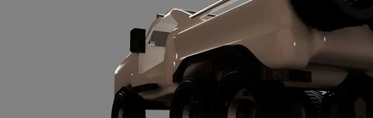 futuristic off-roader design designed and rendered with Fusion 360. Represents a concept, heavy-duty combat capable vehicle with 6x6 wheels. 1:1 scale.