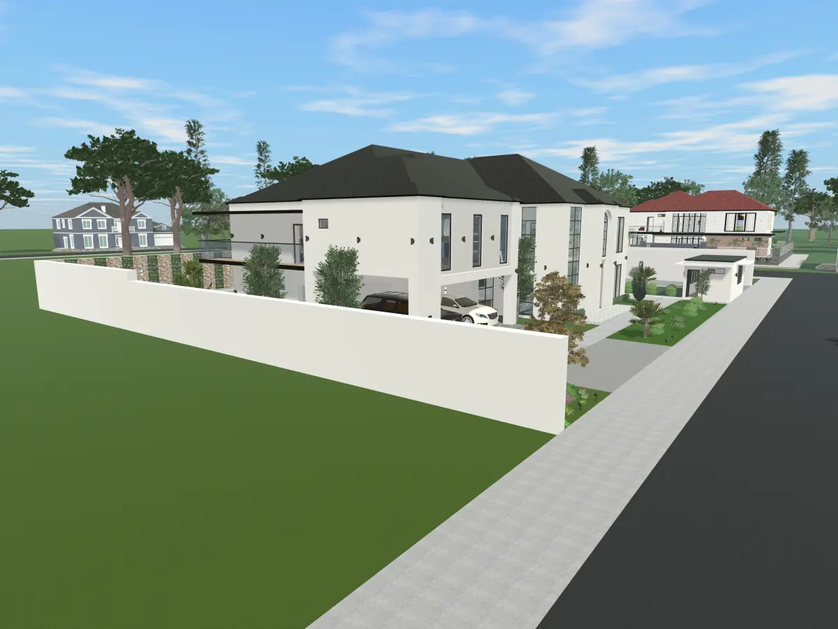 2.) Two-Story Structure: The house consists of two levels, creating a substantial and imposing presence.Symmetrical Facade: The front facade is largely symmetrical, contributing to a sense of balance and formality.