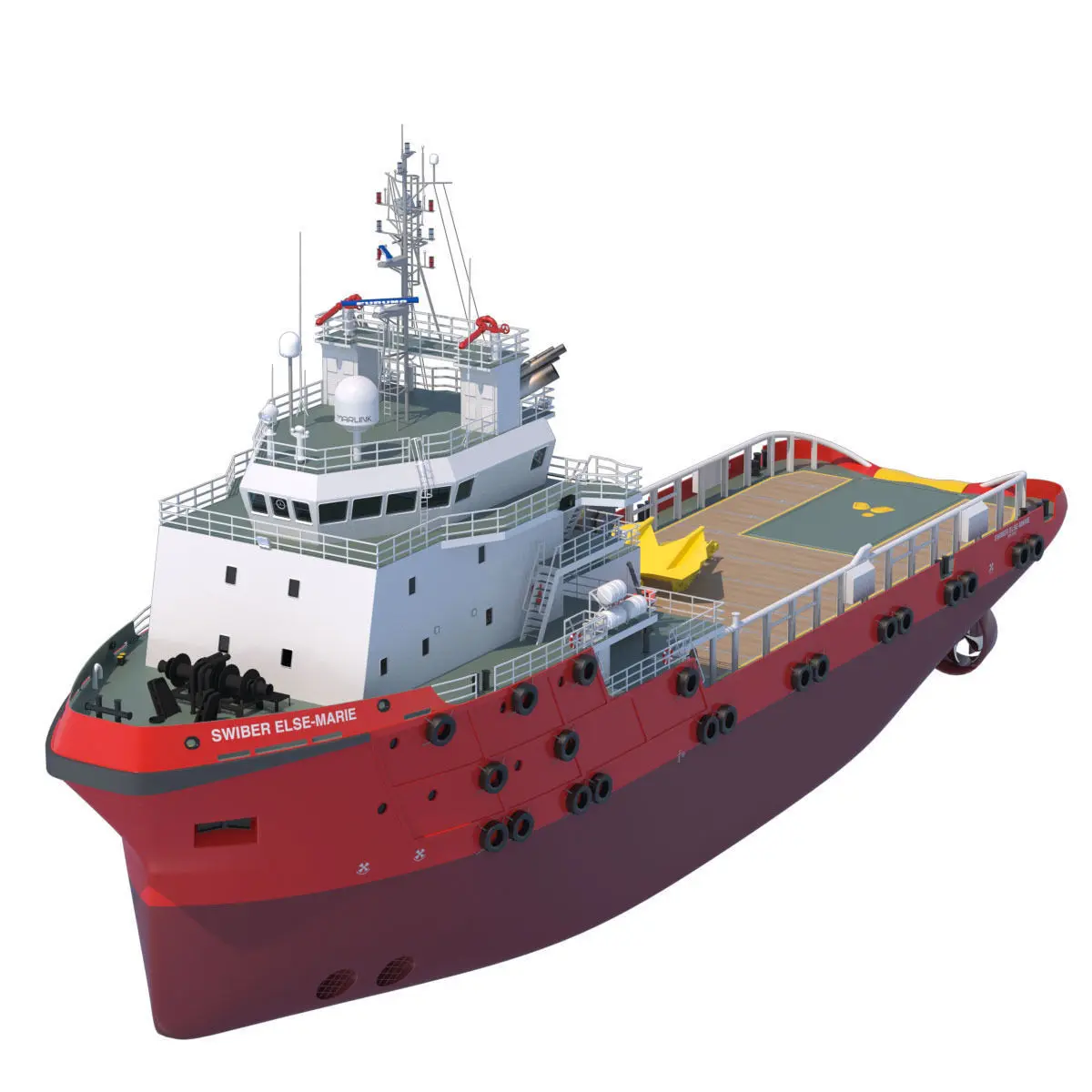 3D high resolution and fully detailed model of a Anchor Handling Tug Supply Vessel.This Anchor Handling Tug/Supply is a large platform supply vessel arranged for oil recovery operations. Length overall 70 m Breadth 16.80 m Deadweight 2,708 mt