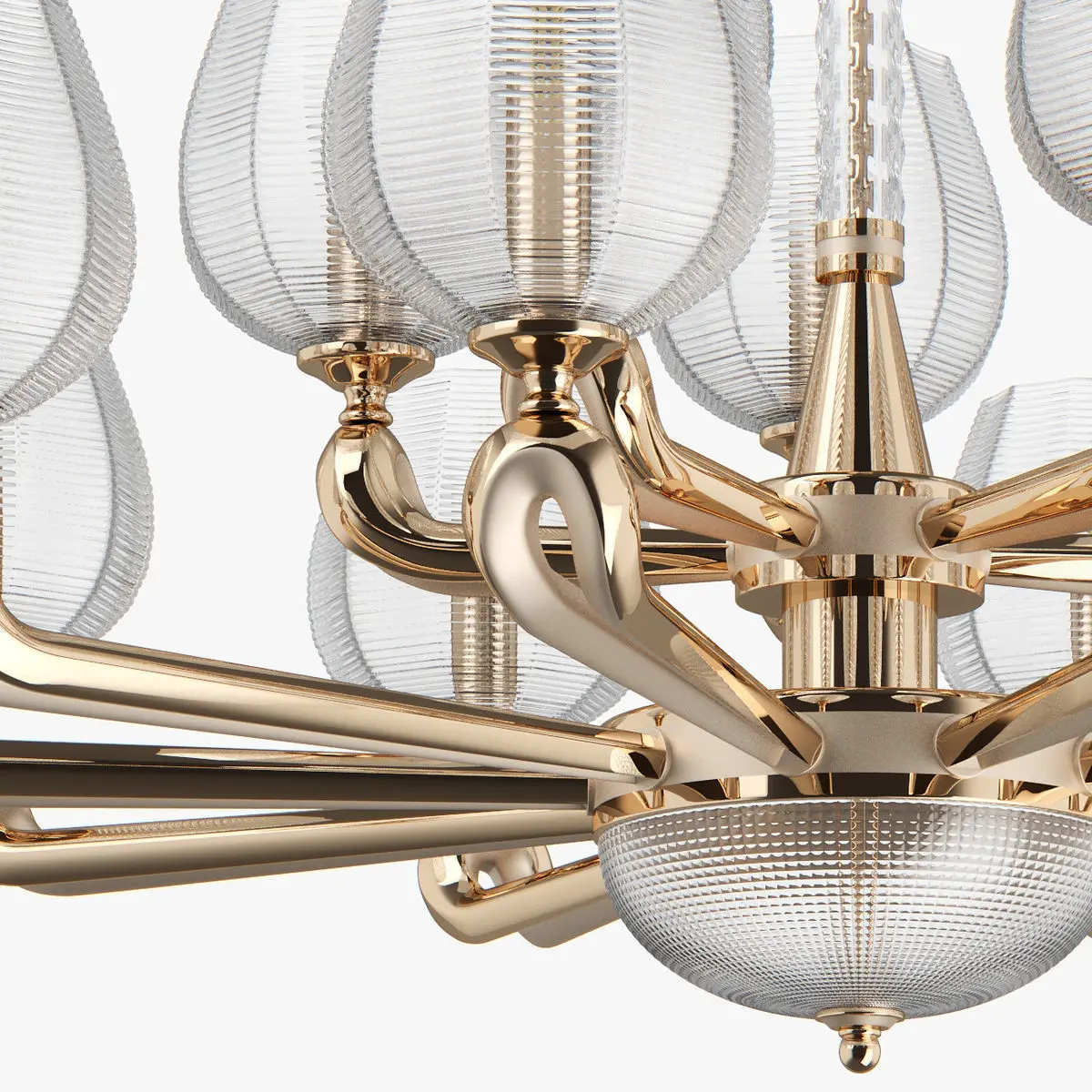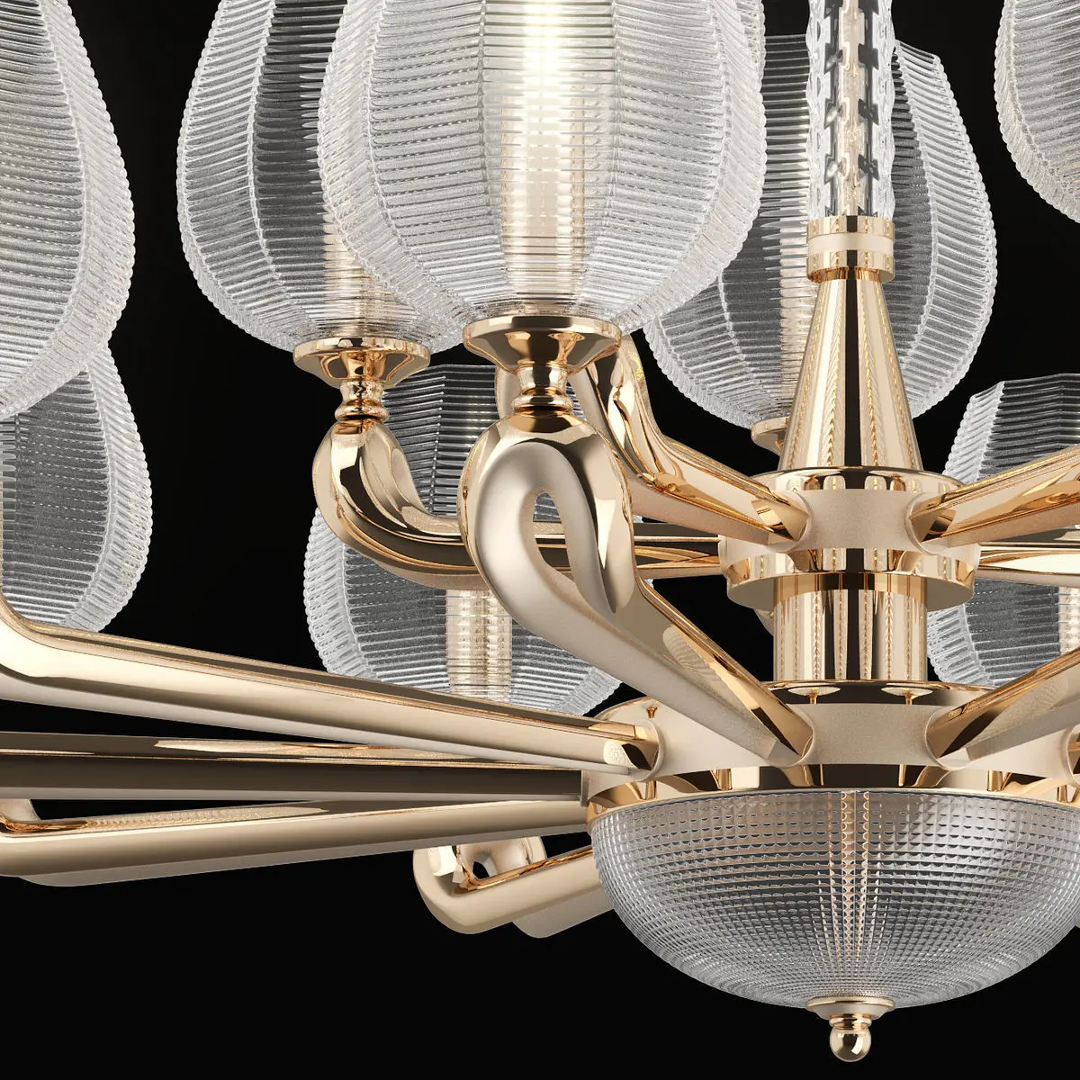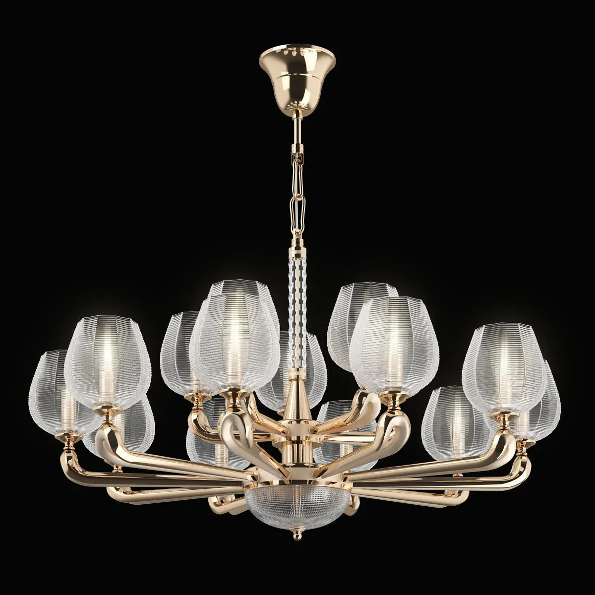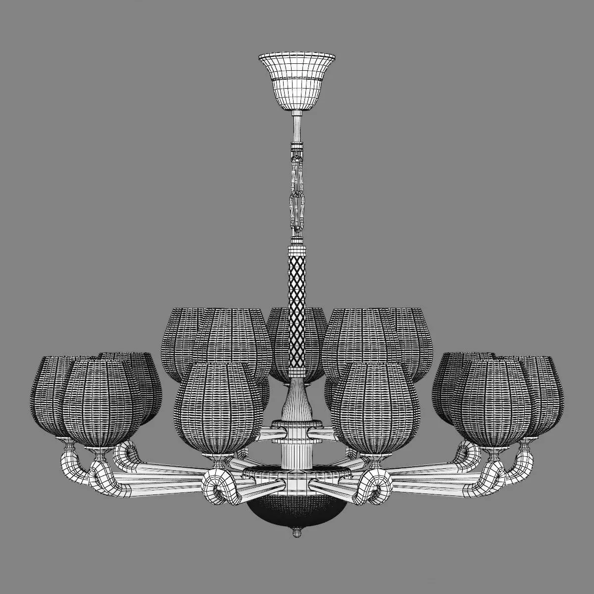 706152 Delta OsgonaChandelier(MDXJ69050 / 15)Height min-max (cm): 87-207; Width (cm): 102; Weight (kg): 25; Number of lamps: 15xE14; Power max (W): 40; Color: Gold;Polys: 266,660Verts: 263,041
