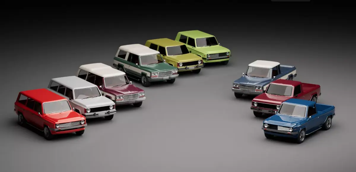 A combination of my design generic 80s and 70s SUVs.