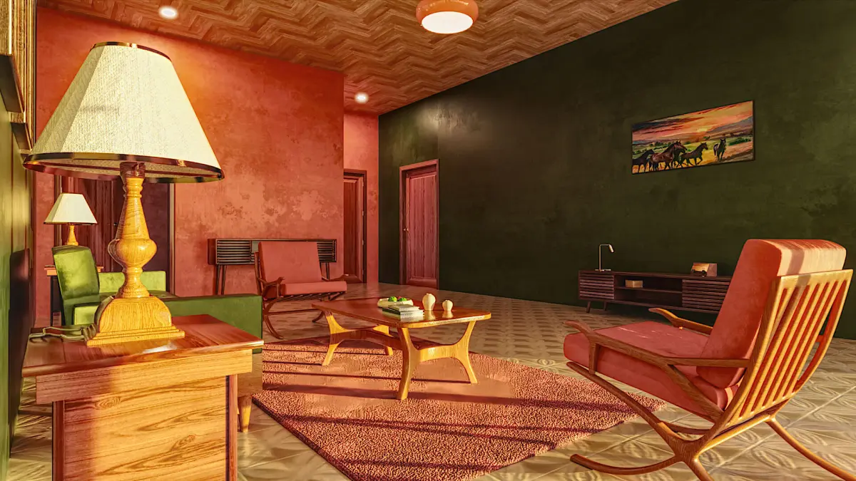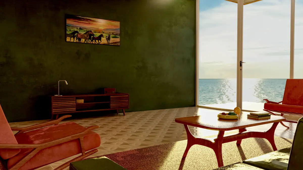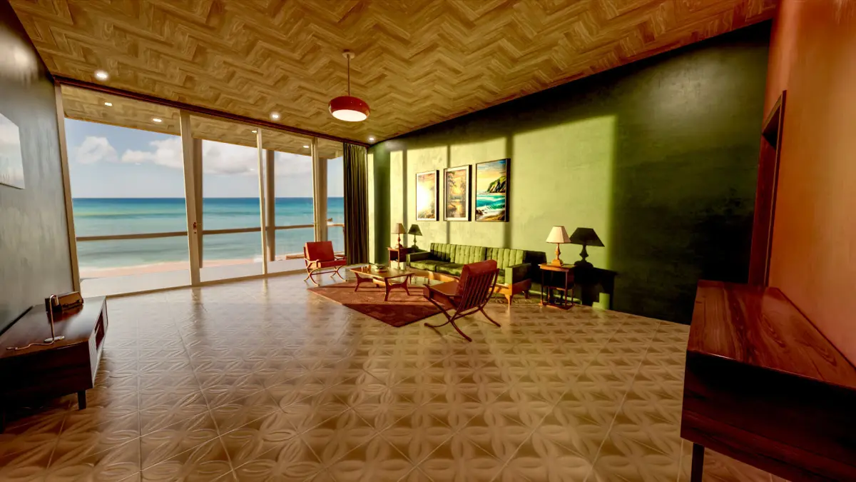 Step back in time with the 70s Living Room, a meticulously crafted 3D environment model for DAZ Studio. This retro-themed living space captures the essence of the 1970s with authentic details and vibrant colors. The room features a mix of mid-century modern furniture, including a plush shag carpet, bold patterned wallpaper, and iconic decor items like lava lamps and vintage posters. The space is bathed in warm, earthy tones, complemented by pops of orange, green, and brown. Each element, from the low-slung sofa to the classic rotary phone, is designed to evoke a sense of nostalgia and provide a perfect backdrop for your retro-themed renders.