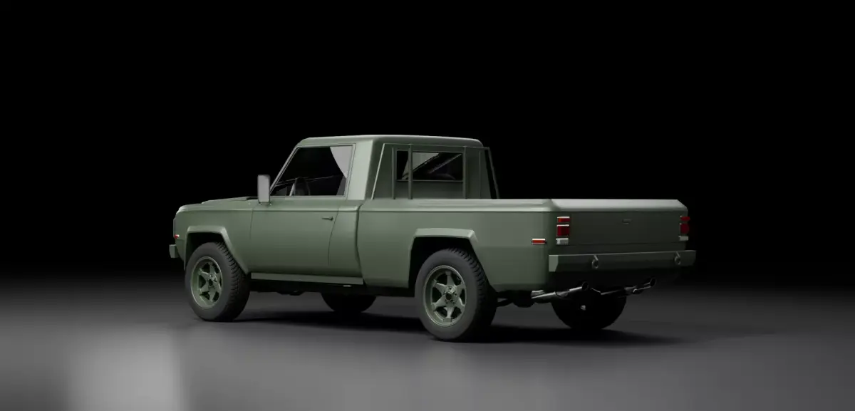 About Car: The idea of this car was born when I was looking for an offroad vehicle in ex-military depo's. I got an idea that I could turn my 70s suv's into more role specified vehicles. So, I took my original 70s pickup truck, updated it's mesh. Added a suspension, new rims and bumpers. Updated it's overall outlook and improved quality