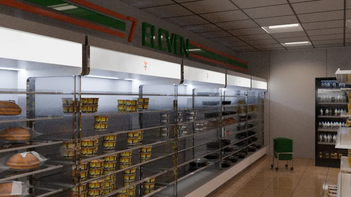 Blend file is available with textures packed into itModeled in Blender, this low-poly scene captures the essence of these iconic stores