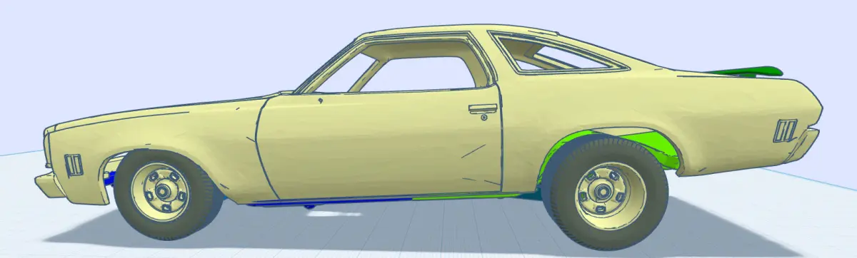 1/25th scale 73 Chevelle add ons, Old School Hot rod set up. These items will fit into the 3d files by Andrey Bezrodny's 73 Chevrolet Chevelle. Items include regular stuff which you would see in a 1:1 car. Plus some what ifs, dual carb tunnel ram and cross ram by Edelbrock. Two muffler replacements, Cherry Bomb bottle mufflers or canister style. Custom exhaust tips, @ types of grills, hooker headers, big and small tires with stock slotted wheels or magnum 500 style rims. 2 hoods available, vents opened and one has center opening, rear spoiler and rear louvers. The rear axle is set up to use any of the pumpkin faces.