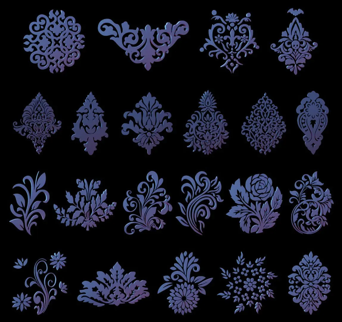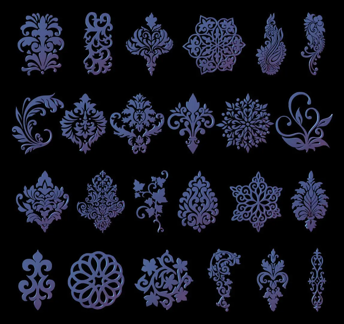 This pack includes 75 Ornaments Motif 3d models as a base mesh to add more detail in your 3d projects.
