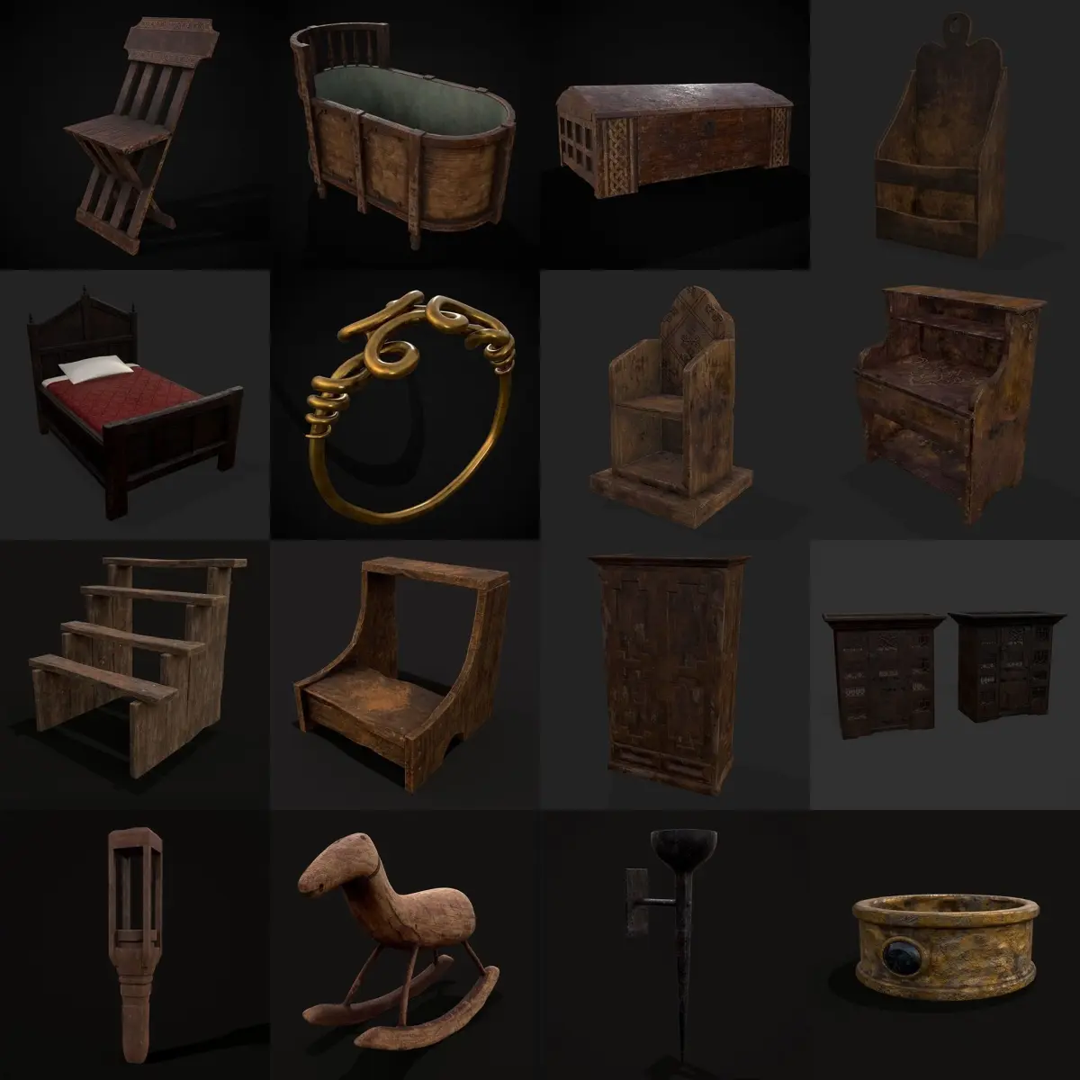 Each model in this pack is also sold individually. See each model's individual page to see full marmoset viewers and wireframe renders. 3D Model List: