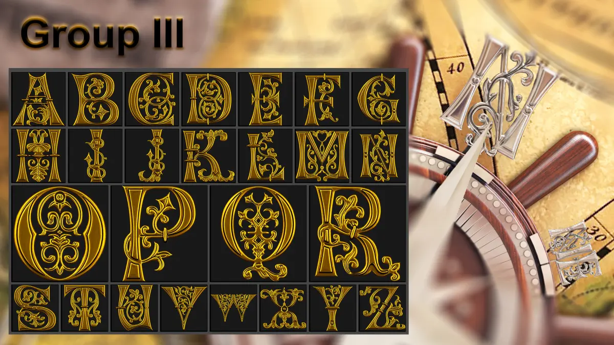 78 Ornamental Alphabet Alpha Brush and 3D Models Vol 7 3D model