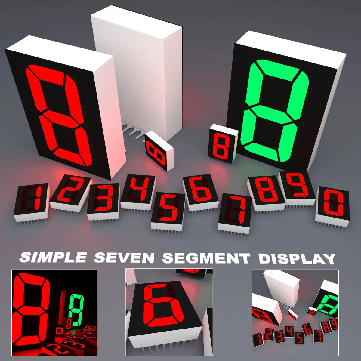 7Segment - Animated Seven Segment Display . It is one of the parts used in the electronic and digital industry, and its 3D model is widely used in advertisements and computer games. The model that has been prepared for you is a simple piece that can be used in the range of low graphics, but at the same time it has good details. This model is designed in 3D Studio Max software and set for the V-Ray rendering engine. In the luminous part of the piece, the optical material is used, which is attached with the file.
