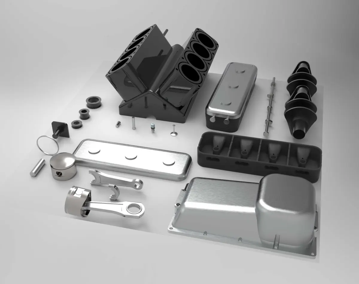 8 cylinder engineincluding 20 different parts such as piston, shaft, cylinder, connecting rod, cam shaft, crankshaft and...