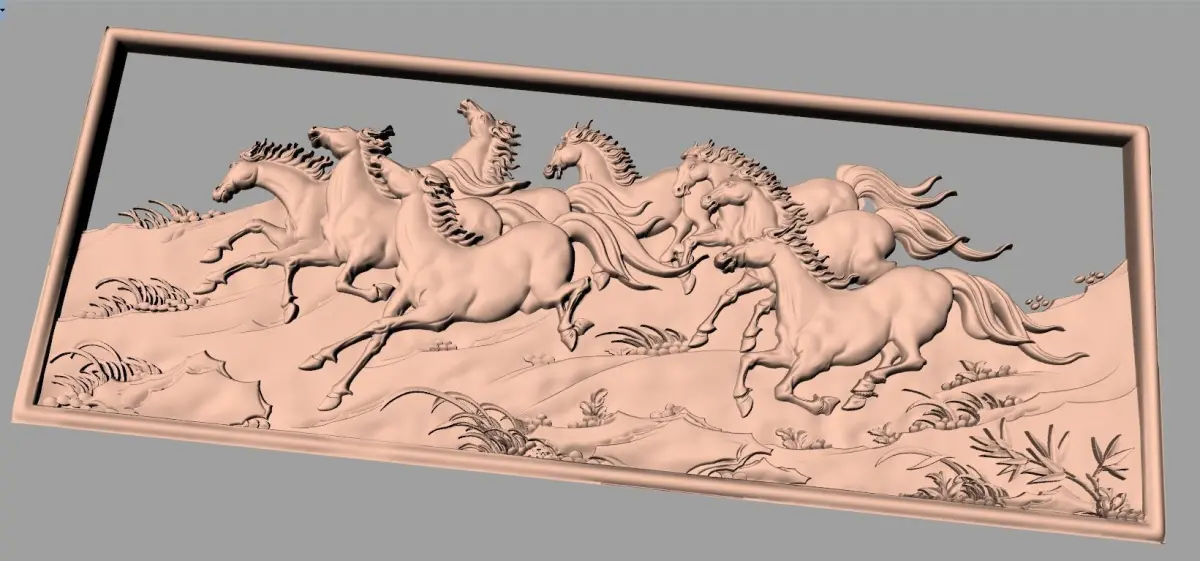 8 horse 3D Relief model STL Format used for CNC Engraving E610Model format: STL format(And BMP Grayscale map) Those 3D relief models are good used for Artcam,Aspire or other 3D software The 3D model are mainly are used for bed door carved furniture,So you need to have an CNC router For those models quality,Same as the picture show Flow me,you will find more and more good models,I will keep update