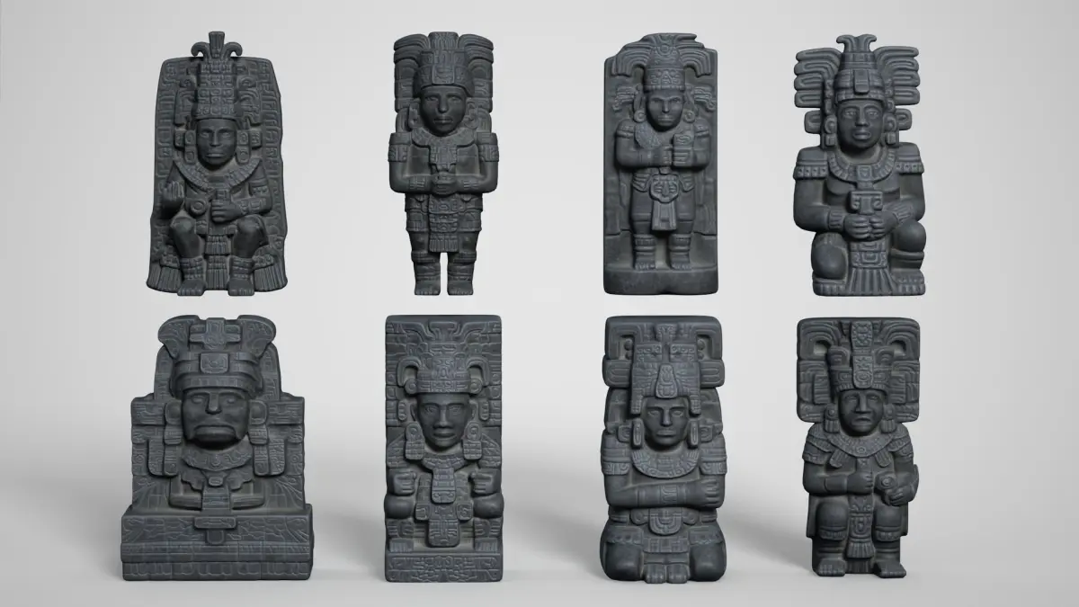 - Number of models: 8 3D Models of Mayan statues