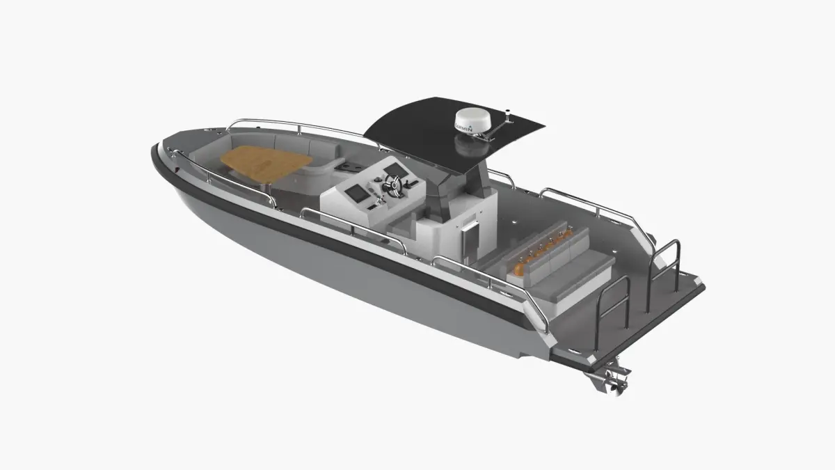 High quality 8 meter yacht tender runabout diver 3D model created at real-world 1:1 scale. This detailed luxury yacht tender boat is designed for use in games, VR environments, marine simulations, and high-quality rendering projects.