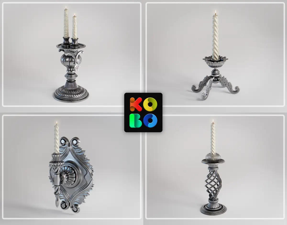 This package features a collection of 8 Ornamental Candlestick 3D assets: