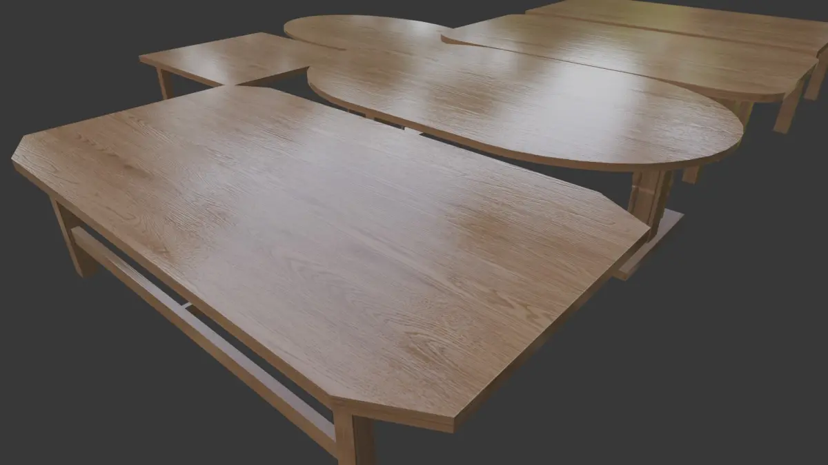 Here I bring a collection of 8 different tables, each one individually and completely separated.I have photos of how it could look in unity and godot when imported, as well as a gif showing how it does not deform when scaling it to the needs of each person.