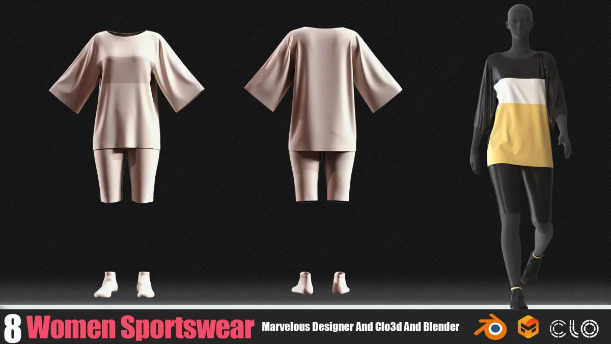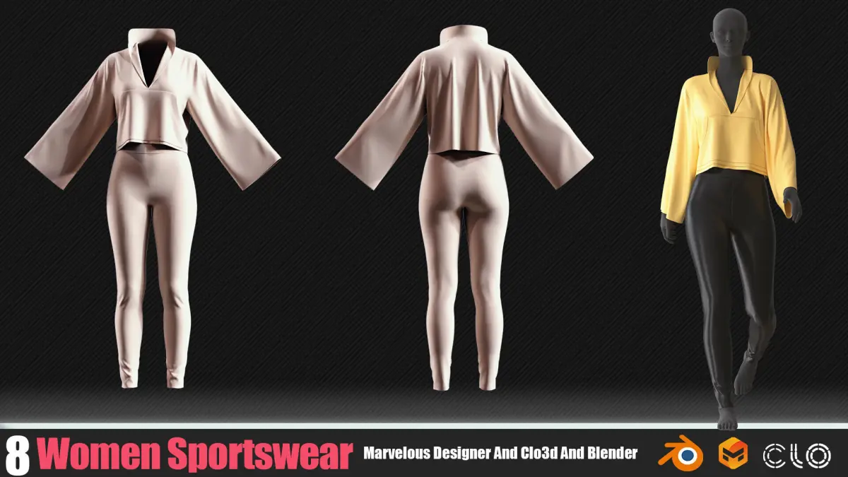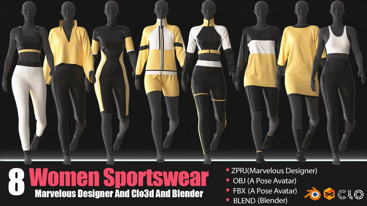 8 Women Sportswear Outfits (CLO3D, MD PROJECTS+OBJ+FBX) Vol 01
