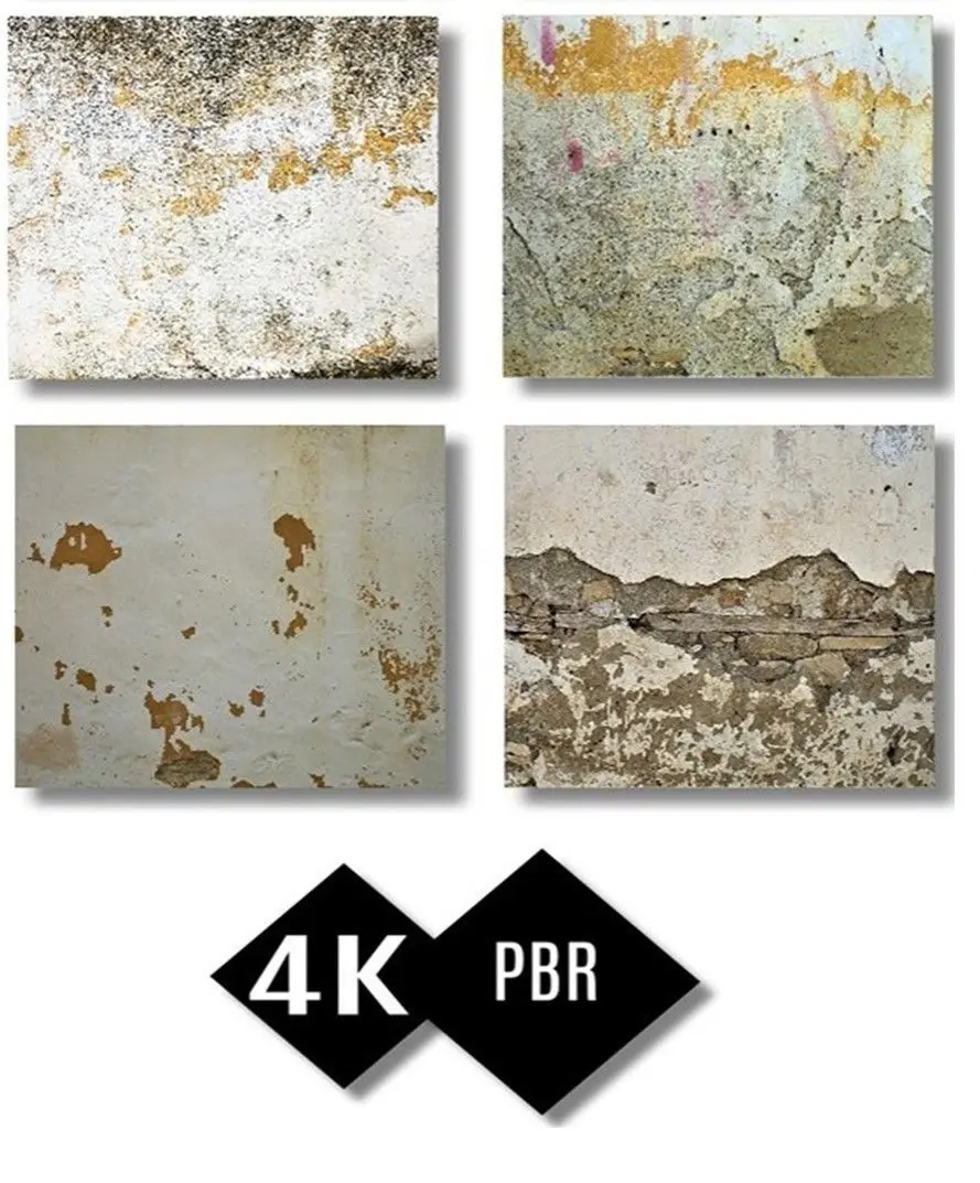 8 x Different High Quality PBR Old Wall Texture.4096 x 4096 pixel. 4K resolution.